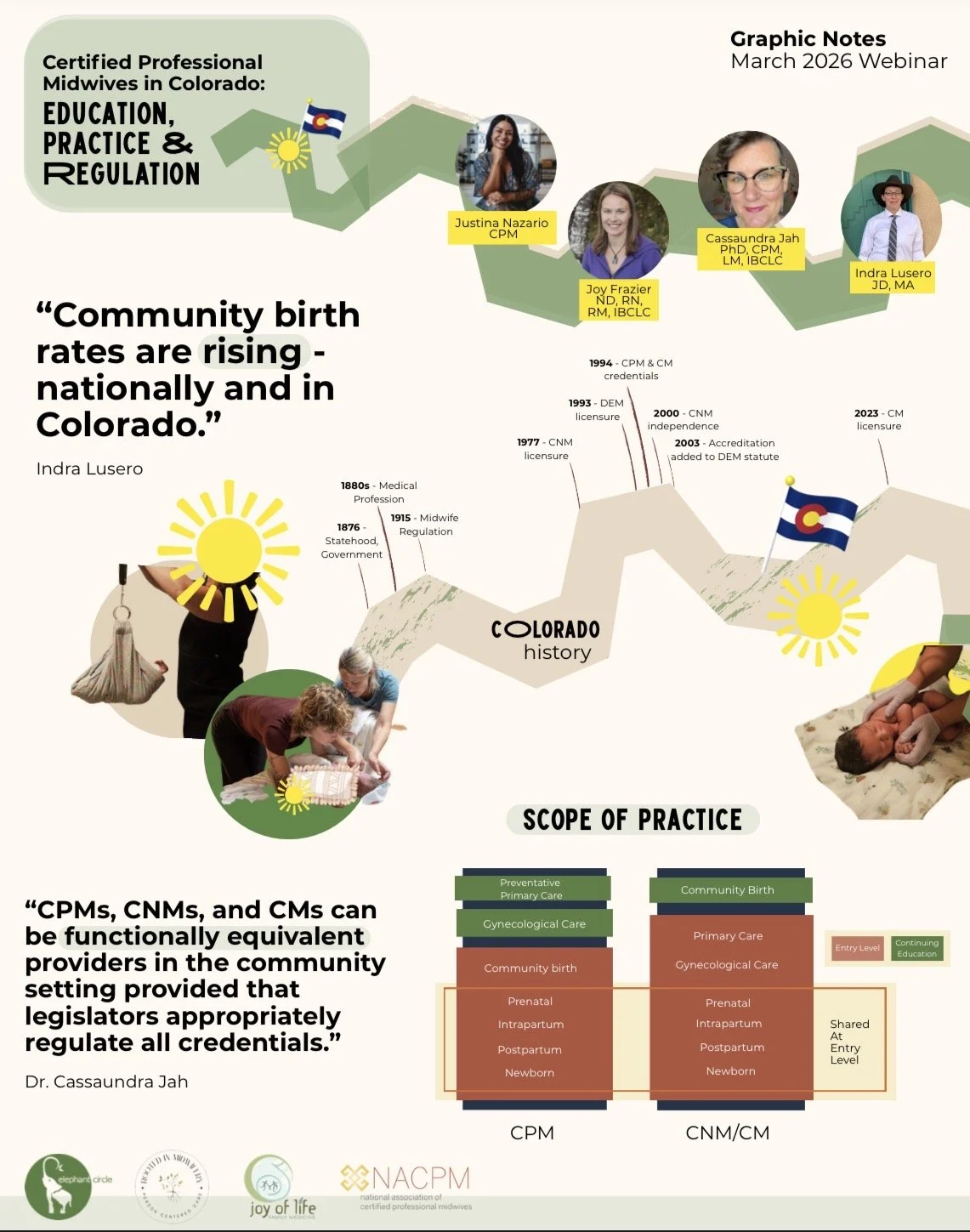 Are attended by community birth professionals including CPMs, CMs, and CNMs.